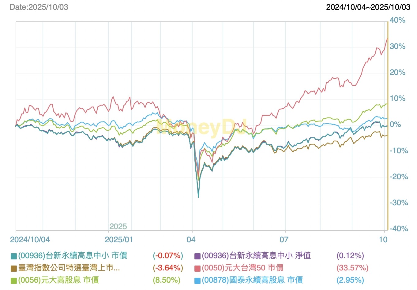 00936 台新永續高息中小型ETF目前的市值約在113億元(截至2025/08/31)。由於聚焦中小型股,價格波動相比其它大型ETF(如0050、0056、00878),浮動來得較大。