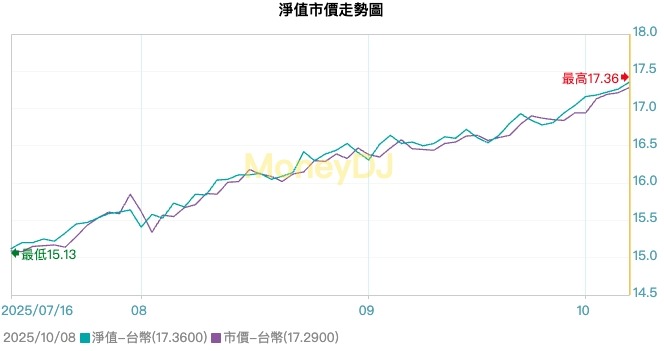 自成立以來(截至2025/10/08),股價(新台幣)三個月從約15元漲至約17元,報酬率約為15%。