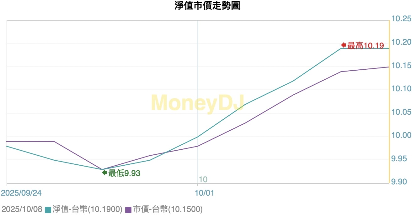 以下為00981T 凱基雙核收息債股平衡型ETF 成立至今的淨值市價走勢圖(截至2025/10/08):