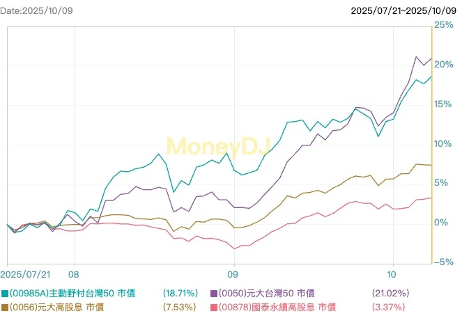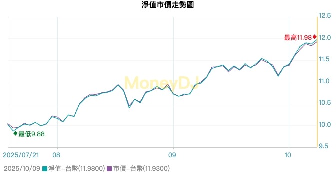 以下為00985A主動野村台灣50ETF的淨值市價走勢圖(截至2025/10/09):