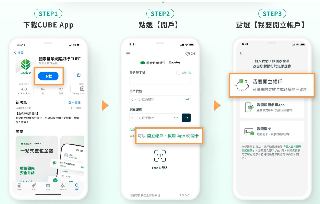 1.若投資人沒有國泰銀行戶,可先依循以下方式開立: