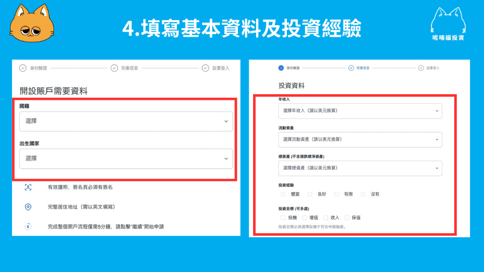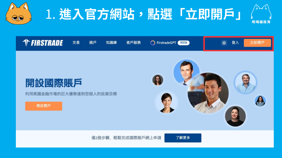 Firstrade第一證券 開戶相當簡便,以下為國際個人帳戶的開戶步驟:
