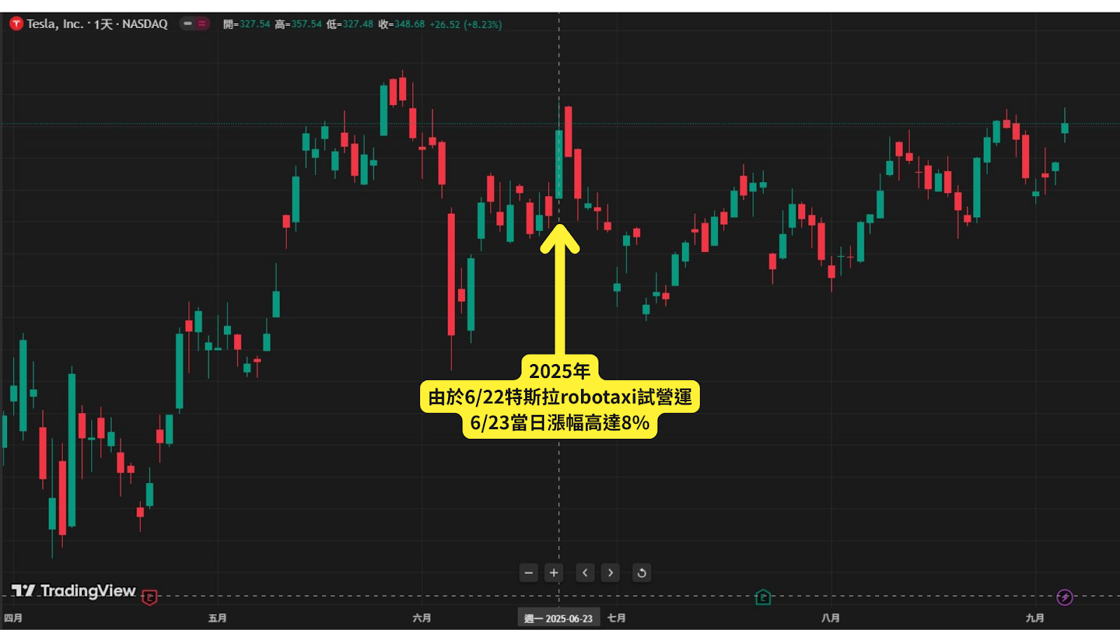 Robotaxi的話題帶動相關產業的股價大漲。例如特斯拉於2025年6月發佈Robotaxi計畫後TSLA單日飆漲逾8%,股價突破約330美元,吸引短線資金追逐。