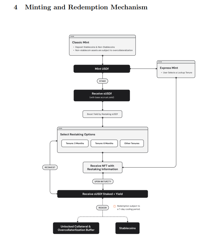 此外,USDf 也可使用非穩定幣換取,透過抵押超額比例的美元來擔保 USDf,旨在維護系統安定性。 - sUSDf(超額擔保穩定幣)