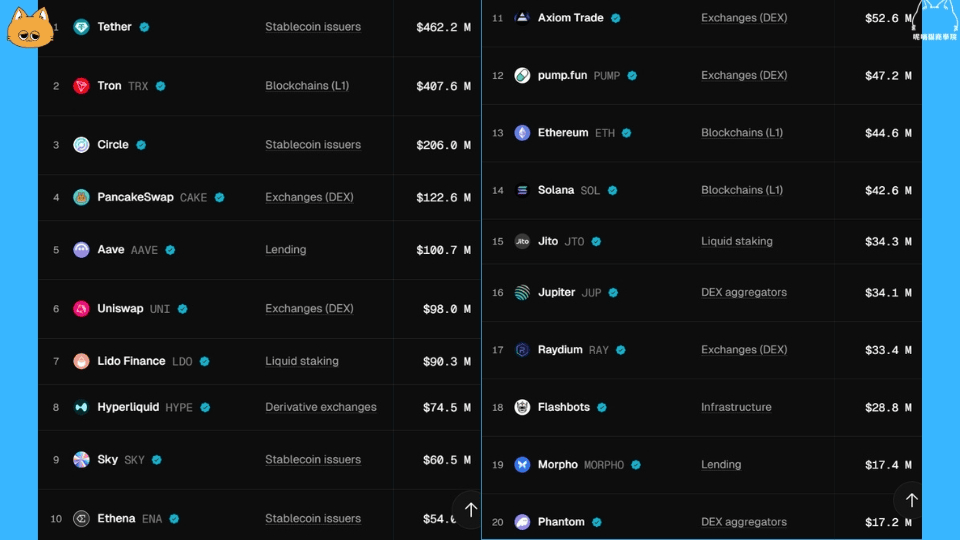 | 7 | pump.fun | DEX 去中心化交易所 | $47.2M |